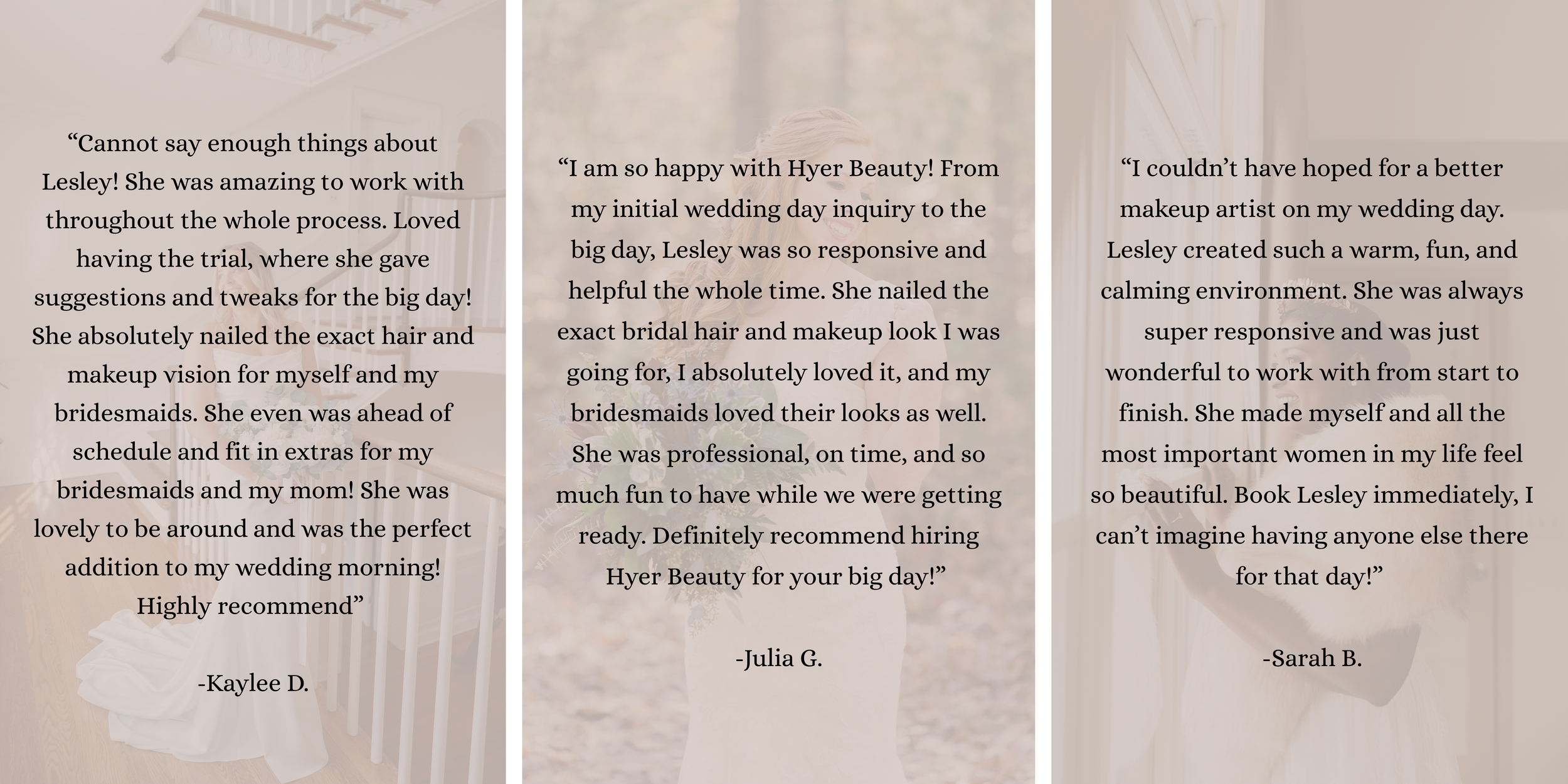 Hyer Beauty by Lesley Hyer specializes in wedding and special event hair and makeup throughout Northern Virginia, Washington DC, and Maryland. Whether you're preparing for your wedding day, a special event, or an elevated everyday look, Hyer Beauty is dedicated to helping you feel confident, radiant, and effortlessly beautiful. Lesley offers both in-studio and on-site hair styling and makeup services - delivering a personalized and stress-free experience from start to finish.